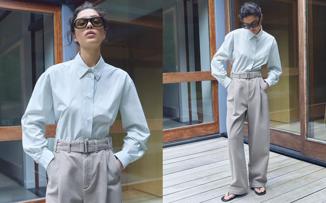 The silhouette suggests rather than exclaims, elegantly displaying the lines of a draped outfit, the volume of trousers animated by the summer breeze, the abstraction of a print, the brilliance of icy blue silk.