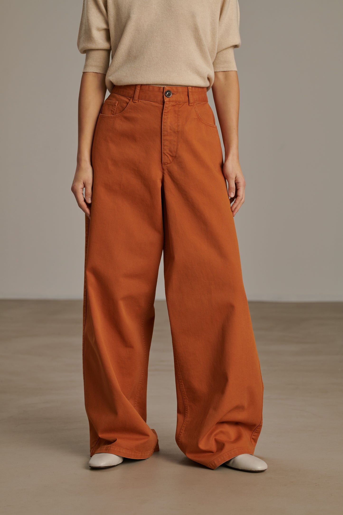 Wide-leg trousers flared at the hem orange